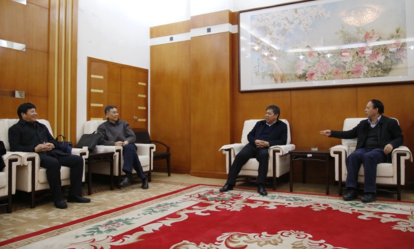 賽云秀書記、屈展校長會(huì)見郝芳院士(右二)、李根生院士(左一)