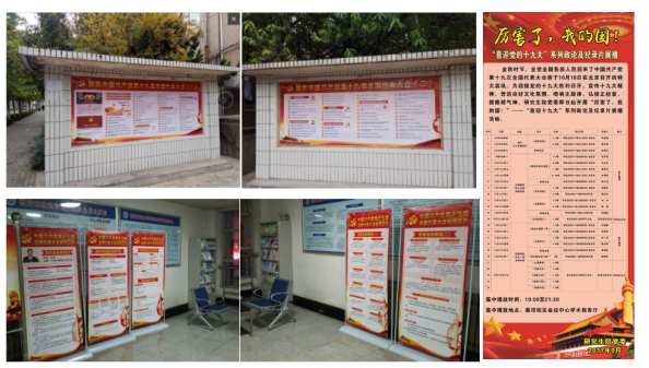 ——及時(shí)設(shè)立黨的十九大宣傳展板。10月20日,研究生院利用雁塔校區(qū)二號研究生公寓前宣傳欄、二號教學(xué)樓9層大廳宣傳展位,集中制作并設(shè)立黨的十九大精神專題宣傳展板7處,進(jìn)一步營造學(xué)習(xí)氛圍,激發(fā)學(xué)習(xí)熱情。
