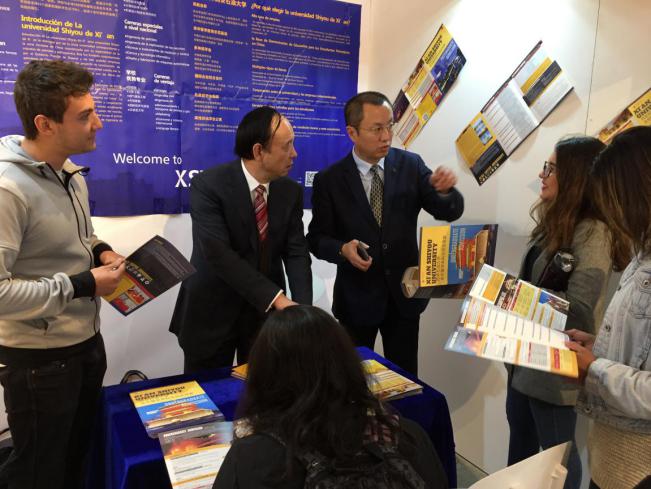 10月16日至24日,由國家留學基金管理委員會主辦的“2017中國高等教育展”先后在哥倫比亞、秘魯兩國舉行。中國駐哥倫比亞大使李念平,哥倫比亞教育部長希亞、貸學基金委(ICETEX)主席巴斯克斯、外交部文化司長哈拉、安第斯大學校長納瓦斯、哈維利亞納大學校長帕恩斯及哥多所高校代表;中國駐秘魯大使賈桂德,秘魯國會教育青年體育委員會主席帕洛瑪、教育部高等教育司司長薩帕塔、秘魯里卡多?帕爾瑪大學校長羅德里格斯,中國駐秘魯大使館文化參贊朱曉燕、秘魯中資企業(yè)協(xié)會副會長陳金濤、中華通惠總局主席梁順及若望二十三世秘中學校、三民聯(lián)校師生等分別參加了兩場開幕式。北京大學、清華大學、北京交通大學、對外經(jīng)濟貿(mào)易大學、吉林大學、復旦大學、同濟大學、上海對外經(jīng)貿(mào)大學、山東大學、武漢大學、西安交通大學、西安石油大學、哈爾濱工業(yè)大學、哈爾濱工程大學、西南大學以及南京藝術(shù)學院等16所中國高校的30名代表參加了本次教育展。留學基金委副秘書長王勝剛擔任代表團團長,我校黨委書記賽云秀、西南大學副校長靳玉樂任副團長。
