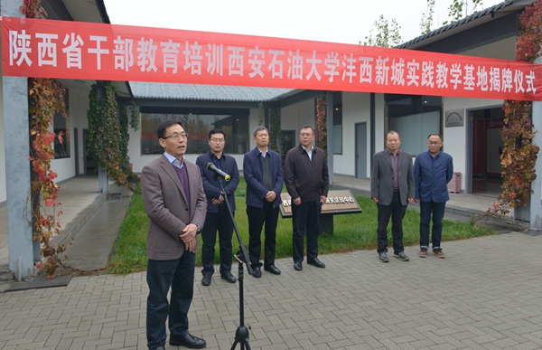 10月25日上午,“陜西省干部教育培訓(xùn)西安石油大學(xué)實(shí)踐教學(xué)基地”揭牌儀式在灃西新城舉辦。灃西新城黨委副書記、紀(jì)委書記張志杰,我校黨委副書記雷西合出席揭牌儀式。灃西新城黨委組織部部長姜勤發(fā)主持儀式。34名2017年秋季陜西省干部教育培訓(xùn)“提升系統(tǒng)思維能力,加快陜西追趕超越步伐”專題研討班學(xué)員參加了儀式。