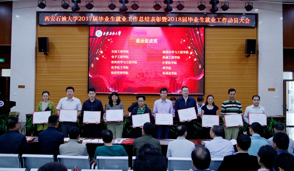 副校長楊戰(zhàn)社宣讀了關(guān)于2017屆畢業(yè)生就業(yè)工作先進(jìn)集體和先進(jìn)個人的表彰決定。與會領(lǐng)導(dǎo)為7項(xiàng)集體獎獲獎單位和15名先進(jìn)個人頒獎。