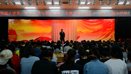 9月25日晚,由校團(tuán)委主辦、理學(xué)院團(tuán)委承辦的第五十期明德大講堂之《青年讀書(shū)與生活體驗(yàn)》在鄠邑校區(qū)騰輝大學(xué)生活動(dòng)中心舉辦。著名主持人、暢銷(xiāo)書(shū)作家大冰擔(dān)任主講,新校區(qū)四百余名學(xué)生聽(tīng)取了講座。