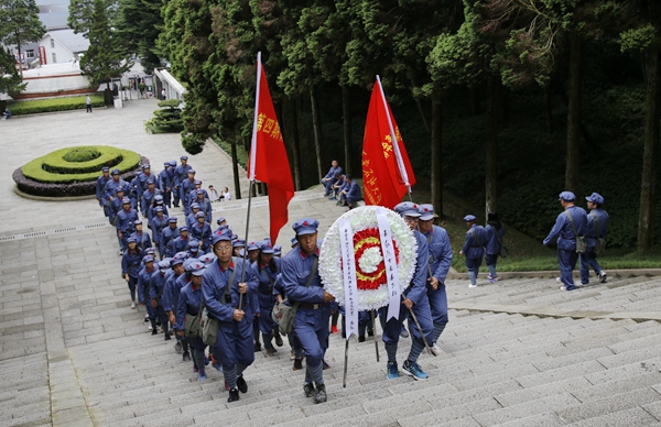 在井岡山烈士陵園,學(xué)員們走進青松環(huán)抱、鮮花盛開的紀念大廳,在毛澤東同志書寫的“死難烈士萬歲”的巨幅牌匾前,大家懷著崇敬的心情向長眠在此的英烈們敬獻了花圈。