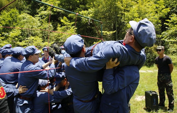 培訓(xùn)期間,全體學(xué)員還觀看了井岡山斗爭全景圖和由600余名紅軍后代表演的大型實景演出《井岡山》;進行了“紅歌教學(xué)”環(huán)節(jié),學(xué)唱了《映山紅》《十送紅軍》等曲目;進行了野外紅色拓展訓(xùn)練,通過齊心協(xié)力完成“穿越封鎖線”等環(huán)節(jié),提升了團隊的凝聚力;召開了營、班等各個層面的學(xué)習(xí)交流座談會。
