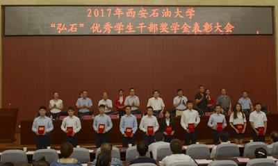 會上,合作發(fā)展處處長蔡上游介紹了弘石基金設(shè)立的相關(guān)情況。弘石基金委員會委員、機械工程學(xué)院徐建寧教授宣讀了《西安石油大學(xué)2017年度“弘石”基金委員會表彰決定》,大會對30名優(yōu)秀學(xué)生干部進(jìn)行了表彰。