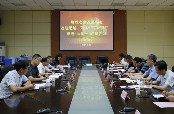 6月21日上午,省屬高校追趕超越、貫徹落實(shí)“三項(xiàng)機(jī)制”、推進(jìn)“兩學(xué)一做”學(xué)習(xí)教育常態(tài)化制度化督導(dǎo)組賈崇吉一行五人來(lái)校督導(dǎo)工作。匯報(bào)會(huì)在第一會(huì)議室召開(kāi)。校黨委書(shū)記賽云秀主持會(huì)議,校領(lǐng)導(dǎo)屈展、李延平、張木、楊戰(zhàn)社出席會(huì)議。相關(guān)職能部門(mén)負(fù)責(zé)人參加了會(huì)議。