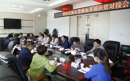 根據(jù)近期全省高校結(jié)對(duì)幫扶貧困縣工作會(huì)議部署,5月8日,校扶貧領(lǐng)導(dǎo)小組副組長(zhǎng),校黨委副書記張木、副校長(zhǎng)楊戰(zhàn)社帶領(lǐng)學(xué)校扶貧辦公室成員赴永壽縣人民政府、永平鎮(zhèn)、堅(jiān)固村進(jìn)一步開展扶貧結(jié)對(duì)對(duì)接調(diào)研。永壽縣委常委、副縣長(zhǎng)樊莉霞及縣委縣政府有關(guān)部門負(fù)責(zé)人;縣委常委、紀(jì)委書記張振乾,副縣長(zhǎng)任各,永平鎮(zhèn)鎮(zhèn)長(zhǎng)秦立飛;堅(jiān)固村黨支部書記成軍平、村民委員會(huì)主任李小勇等分別與學(xué)校對(duì)接調(diào)研組進(jìn)行了座談交流。