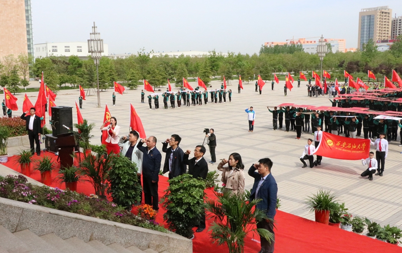 4月21日上午,為紀念建團九十五周年,深入開展“學習習近平總書記講話,做合格共青團員”教育實踐,大力推進從嚴治團,切實增強團員的先進性和光榮感,我校團委在新校區(qū)圖書館北廣場隆重舉辦“不忘初心跟黨走”紀念建團九十五周年活動啟動儀式暨千人重溫入團誓詞活動。校黨委副書記張木、團省委學校部部長潘磊出席活動。西安建筑科技大學、西安體育學院、陜西國防工業(yè)職業(yè)技術(shù)學院、西安醫(yī)學高等專科學校等四所駐戶縣兄弟院校和我校團委負責人,各院(系)團委書記、團干部及新校區(qū)1500余名團員青年參加了活動。