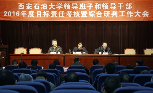 3月24日上午,省委組織部、省委高教工委在我校學(xué)術(shù)報告廳召開了西安石油大學(xué)領(lǐng)導(dǎo)班子和領(lǐng)導(dǎo)干部2016年度目標(biāo)責(zé)任考核暨綜合研判工作大會。省屬高校領(lǐng)導(dǎo)班子和領(lǐng)導(dǎo)干部目標(biāo)責(zé)任考核暨綜合研判第二工作小組組長、陜西省干部教育辦公室副主任郭文超出席會議并講話。校黨委書記賽云秀主持大會。省紀(jì)委駐教育廳紀(jì)檢組副組長易紅彬、省教育廳離退處副處長王亞麗、省委組織部宣教干部處主任科員李芃、省委高教工委組織部干部馮政清、西安理工大學(xué)人事處干部程瑤等考核組成員,我校校領(lǐng)導(dǎo)、校黨委委員、紀(jì)委委員、學(xué)術(shù)委員會委員、工會委員,正高職稱專業(yè)技術(shù)人員,正處級以上領(lǐng)導(dǎo)干部,市級以上人大代表、政協(xié)委員,民主黨派主要負(fù)責(zé)人,近三年退休的校級領(lǐng)導(dǎo)干部參加大會。