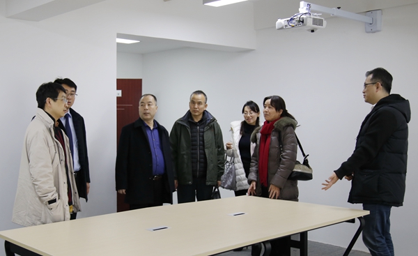 陳軍斌副校長陪同專家組考察教學(xué)設(shè)施