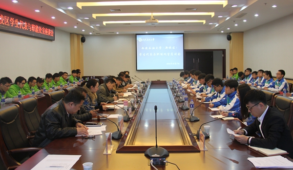 12月8日下午,2016-2017學(xué)年學(xué)生代表與職能處室座談會在新校區(qū)圖書館第二會議室召開。校黨委副書記雷西合、各職能處室負(fù)責(zé)人及新校區(qū)30余名學(xué)生代表參加會議。