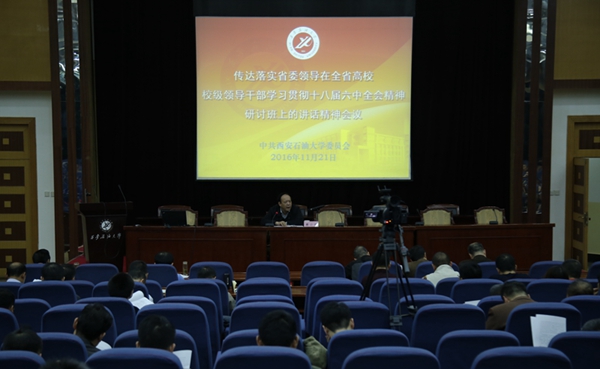 11月21日下午,校黨委在會議中心學(xué)術(shù)報(bào)告廳召開了傳達(dá)落實(shí)全省高校校級領(lǐng)導(dǎo)干部學(xué)習(xí)貫徹十八屆六中全會精神研討班精神會議。校黨委書記賽云秀主持會議。全校處級以上干部、教工黨支部書記參加了會議。