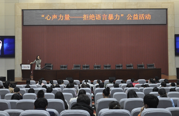11月17日晚,由陜西廣播電視臺(tái)896汽車(chē)調(diào)頻《長(zhǎng)安夜話》節(jié)目發(fā)起,團(tuán)省委青少年權(quán)益維護(hù)中心、陜西省律師協(xié)會(huì)共同支持的“心聲力量——拒絕語(yǔ)言暴力”公益活動(dòng)在我校新校區(qū)舉辦。知名主播曉輝、馬小路、馬大帥擔(dān)任主講嘉賓,此次活動(dòng)由校團(tuán)委承辦。
