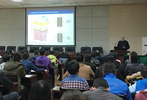 在校期間,Tayfun教授、金哲輝博士為我校師生作了學術(shù)報告。他們分別以“提高致密砂巖儲層原油采收率的研究”、“分子角度的頁巖介質(zhì)中流體相態(tài)及流動的熱動力學建模研究”、“What Should I Do Before I Graduate to Build a Strong Petroleum Engineering Career”為題,利用生動的圖表與豐富的數(shù)據(jù)展示了各自最新的研究成果,尤其就非常規(guī)地質(zhì)儲層的特征研究、儲層巖石力學性能分析、儲層流體微觀滲流機理、儲層改造技術(shù)與室內(nèi)實驗研究等方面內(nèi)容進行了詳細介紹,并在講座最后與我校師生進行了交流。