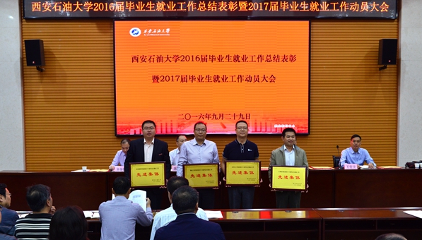 ??學生工作處處長、就業(yè)指導中心主任王宏衛(wèi)發(fā)布了《西安石油大學2016屆畢業(yè)生就業(yè)工作年度報告》,印發(fā)了新修訂的《西安石油大學畢業(yè)生就業(yè)工作考評獎勵辦法》(西石大生[2016]171號)。機械工程學院副院長陳子恒、計算機學院輔導員路婷以及石油工程學院輔導員張歡分別代表先進集體、先進個人和2017屆畢業(yè)生輔導員作了發(fā)言。