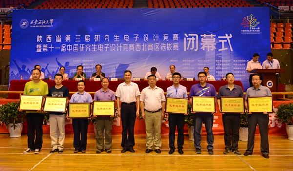 經(jīng)過(guò)兩天的激烈角逐,7月8日下午,陜西省第三屆研究生電子設(shè)計(jì)競(jìng)賽暨第十一屆中國(guó)研究生電子設(shè)計(jì)競(jìng)賽西北賽區(qū)選拔賽閉幕式在我校體育館舉行。陜西省政府學(xué)位委員會(huì)秘書長(zhǎng)袁寧,我校校長(zhǎng)屈展、副校長(zhǎng)李天太,西安理工大學(xué)副校長(zhǎng)李言,陜西省學(xué)位委員會(huì)辦公室主任權(quán)秋虎,陜西省研究生電子設(shè)計(jì)競(jìng)賽秘書處負(fù)責(zé)人李青山,西安愛(ài)科賽博電氣有限公司經(jīng)理馮廣義等出席閉幕式,