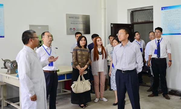 黨政辦公室、教務處、國際教育學院、石油工程學院、電子工程學院、材料科學與工程學院、人文學院等單位負責人參加座談會并陪同考察。
