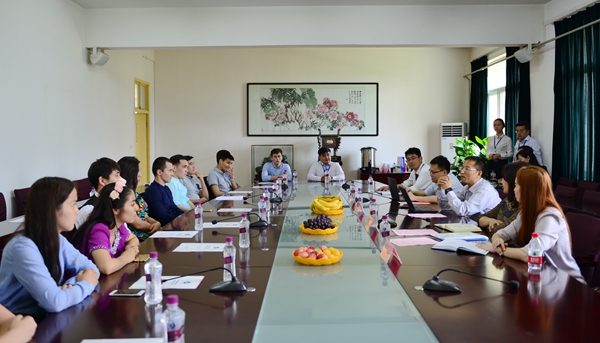 下午,考察團一行分別與在校留學生代表、院系負責人進行了交流座談,詳細了解留學生在校學習、生活等方面的情況,聽取了各院系專業(yè)教學、師資隊伍等方面的介紹。