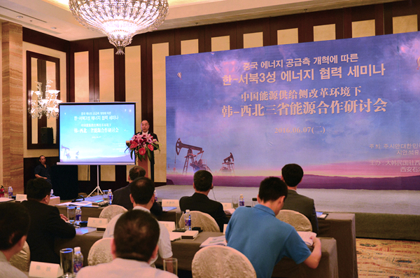 6月7日上午,我校與韓國駐西安領(lǐng)事館在西安香格里拉酒店共同主辦了“中國能源供給側(cè)改革環(huán)境下 韓—西北三省能源合作研討會”。我校校長屈展、副校長陳軍斌,韓國駐西安領(lǐng)事館總領(lǐng)事李康國、韓國礦物資源公社西安代表處首席代表孫榮甫、韓國駐華大使館商務(wù)官金賢哲,西安市人民政府外事僑務(wù)辦公室副主任王小鎮(zhèn)、陜西省教育廳科技處處長甘世平、陜西省教育廳國際合作與交流處副處長文通、陜西省能源局石油天然氣處處長黑喜生,華能陜西發(fā)電公司副總經(jīng)理顧可偉、陜西延長石油(集團)公司副總經(jīng)理羅萬明等出席會議。研討會由我校陳軍斌副校長主持,李康國總領(lǐng)事和屈展校長分別向中韓兩國嘉賓致辭。