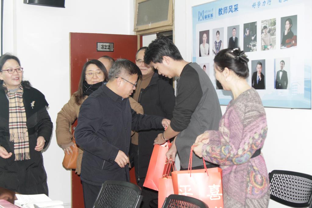 張驍勇一行先后來到雁塔校區(qū)東門值班崗、音樂系、校醫(yī)院、后勤服務(wù)大廳等部分值守崗位,每到一處,張驍勇都與大家親切握手、互致問候,并送上慰問品,表達節(jié)日祝福。張驍勇代表學(xué)校對值守人員在春節(jié)期間舍小家顧大家,堅守工作崗位表示由衷地感謝。同時,他強調(diào)相關(guān)單位在春節(jié)值守期間,要強化責任意識,確保春節(jié)期間校園安全穩(wěn)定和正常運轉(zhuǎn)。