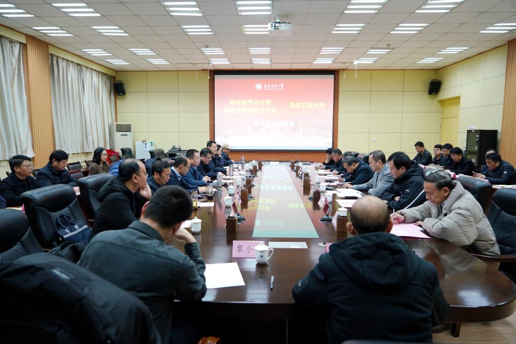 何發(fā)岐對我校的熱情接待表示感謝。他談到,中石化華北油氣分公司發(fā)展歷史悠久,是一家集石油天然氣勘探開發(fā)、工程施工、科研服務(wù)和油氣銷售為一體的大型國有企業(yè),擁有豐富的經(jīng)驗和先進(jìn)的技術(shù)。西安石油大學(xué)專業(yè)門類齊全,基礎(chǔ)研究深厚,期待雙方能夠在鄂爾多斯盆地的勘探與開發(fā)、黃河流域生態(tài)環(huán)境保護(hù)等多領(lǐng)域加強(qiáng)交流與合作,為我國石油工業(yè)的發(fā)展作出更大的貢獻(xiàn)。