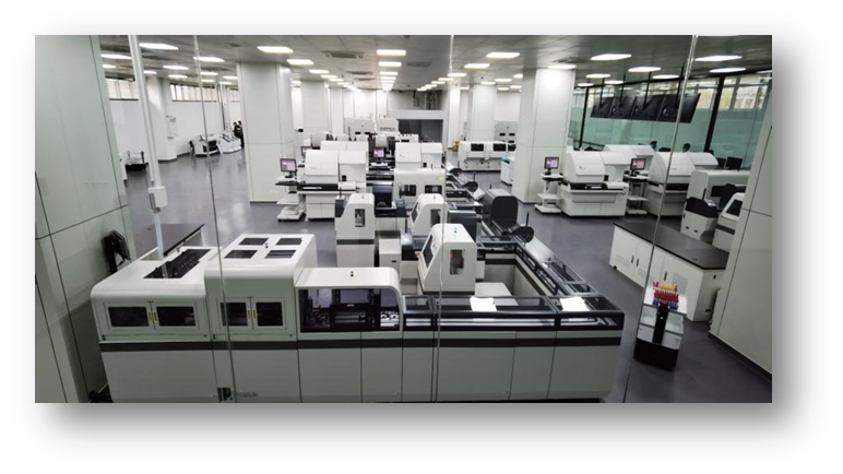 張驍勇一行實(shí)地參觀了智慧化無人值守智慧化檢驗(yàn)實(shí)驗(yàn)室、臨床分子實(shí)驗(yàn)室、微生物及藥敏實(shí)驗(yàn)室、質(zhì)量安全管理部和與三橋社區(qū)衛(wèi)生服務(wù)中心合作共建實(shí)驗(yàn)室,了解了全國首個(gè)擁有無人值守全自動檢驗(yàn)流水線的醫(yī)學(xué)檢驗(yàn)實(shí)驗(yàn)室在充分運(yùn)用“互聯(lián)網(wǎng)+”技術(shù)搭建人工智能平臺,實(shí)現(xiàn)送檢標(biāo)本從分揀、檢驗(yàn)、審核到存儲、復(fù)檢的全流程智慧化運(yùn)行情況。座談環(huán)節(jié),張驍勇向西安區(qū)域醫(yī)學(xué)檢驗(yàn)中心簡要介紹了學(xué)?;厩闆r、醫(yī)療工作現(xiàn)狀以及發(fā)展愿景。張曉勇提到今年是我校貫徹落實(shí)學(xué)校第三次黨代會的開局之年,開啟了學(xué)校各項(xiàng)事業(yè)高質(zhì)量發(fā)展的新征程,做好醫(yī)療等重要民生工程,構(gòu)建以人為本、可持續(xù)發(fā)展的一流保障體系是學(xué)校高質(zhì)量發(fā)展的基礎(chǔ),希望通過雙方進(jìn)一步深化合作,推動優(yōu)質(zhì)檢驗(yàn)資源下沉擴(kuò)容,發(fā)揮西安醫(yī)檢體系優(yōu)勢和平臺作用,為我校廣大師生提供便捷、精確的醫(yī)學(xué)檢驗(yàn)服務(wù)。