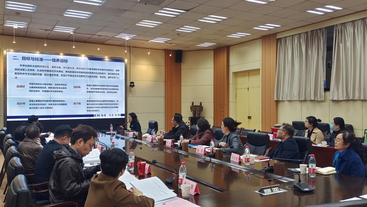 國際中文教育碩士專業(yè)學位授權(quán)點負責人王敬艷副教授代表授權(quán)點從培養(yǎng)目標與標準、培養(yǎng)特色、師資隊伍、科學研究、課程教學、實踐教學與專業(yè)實習、論文質(zhì)量、學生就業(yè)、中外交流、條件建設(shè)和制度保障等方面進行了匯報。