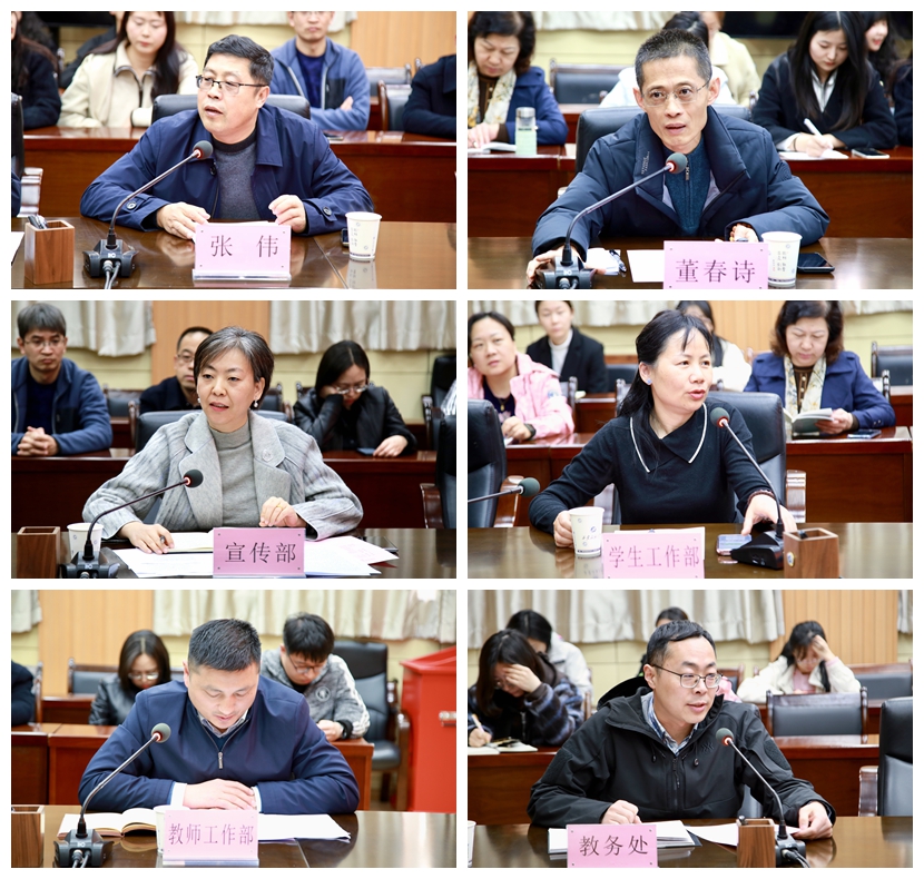 宣傳部、學(xué)生工作部、教師工作部、教務(wù)處等職能處室負(fù)責(zé)同志分別發(fā)言,就創(chuàng)新和改進(jìn)思政課建設(shè)、構(gòu)建“大思政課”育人格局等提出建議。