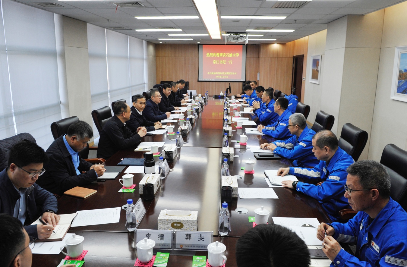 現(xiàn)場參觀考察后,常江、王進富一行來到中國石油新疆油田公司總部,與公司執(zhí)行董事、黨委書記方慶,副總經(jīng)理、總地質(zhì)師宋永,副總經(jīng)理劉洪洲等座談交流。常江指出,新疆油田公司近年來在油氣勘探上連獲突破,油氣產(chǎn)量再創(chuàng)新高,綠色低碳轉(zhuǎn)型加快推進,公司發(fā)展實力有目共睹。希望雙方建立更加緊密的合作關(guān)系,圍繞公司9大專項、12個重點項目開展科研攻關(guān),為公司技術(shù)體系構(gòu)建提供有力的人才和智力支撐,作出西石大貢獻。王進富表示,非常感謝公司對學校學生的關(guān)心和支持,公司和學校都因油而生,這次訪企拓崗和現(xiàn)場調(diào)研更是聞了油香、沾了油味,期待雙方開展更深層次、更大規(guī)模的合作,校企共同結(jié)油緣、創(chuàng)未來,助力公司早日實現(xiàn)現(xiàn)代化綜合性能源公司的目標。方慶談到,非常感謝學校送教育到行業(yè),一部油田的成長史發(fā)展史就是石油高校的成長史發(fā)展史,校企雙方在教育科技人才領(lǐng)域的合作空間廣闊,希望開展廣泛交流、優(yōu)勢對接、時效合作,在推動創(chuàng)新聯(lián)合體、柔性人才培養(yǎng)等方面取得積極進展。公司科技信息部經(jīng)理王建介紹了公司發(fā)展情況,并就與學校在油氣增儲上產(chǎn)、綠色低碳轉(zhuǎn)型等方面的合作進行了溝通交流。
