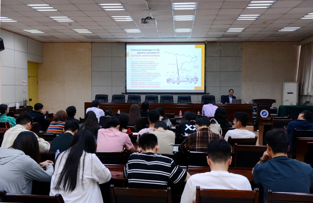 最后,程院士指出,目前國(guó)際能源工業(yè)在發(fā)展CCUS技術(shù)方面,投入大量人力物力并取得巨大進(jìn)步,預(yù)計(jì)CCUS技術(shù)是在較長(zhǎng)時(shí)期內(nèi)平衡能源供應(yīng)保障與能源轉(zhuǎn)型的重要手段。但CCUS技術(shù)研發(fā)方面還存在很多不足,腐蝕是導(dǎo)致CO2管道失效的最重要原因。分享結(jié)束后,程院士與在場(chǎng)師生開展了積極的互動(dòng)交流,詳細(xì)地回答了師生提出的各種問(wèn)題。