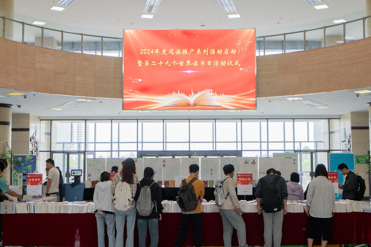 隨后大家一起參加了由圖書館主辦、陜西天啟文化發(fā)行有限公司協(xié)辦的“你選書 我買單 即選即借”2024年圖書現(xiàn)采、現(xiàn)借活動?;顒蝇F(xiàn)場展示了各類新書、暢銷書1800余冊,種類涵蓋黨建讀物、社會科學、人物傳記、文學小說、自然科學等各個領(lǐng)域。活動中,現(xiàn)場數(shù)百名學生積極參與這種零距離、零等待的閱讀體驗,同學們或低聲討論,或捧書翻閱,細細挑選、慢慢品讀著自己喜歡的圖書,按照自己的喜好挑選好圖書,交由現(xiàn)場圖書館工作人員即時編目加工、即時借閱,實現(xiàn)圖書“即選即借”的快捷體驗。