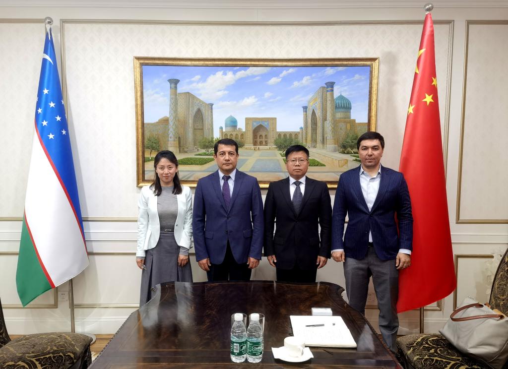 4月24日下午,副校長張驍勇一行赴烏茲別克斯坦駐華大使館訪問并座談。烏茲別克斯坦駐華大使阿爾濟(jì)耶夫?法爾霍德、商務(wù)參贊依赫提亞爾?尼亞孜穆拉多夫參加會(huì)談。