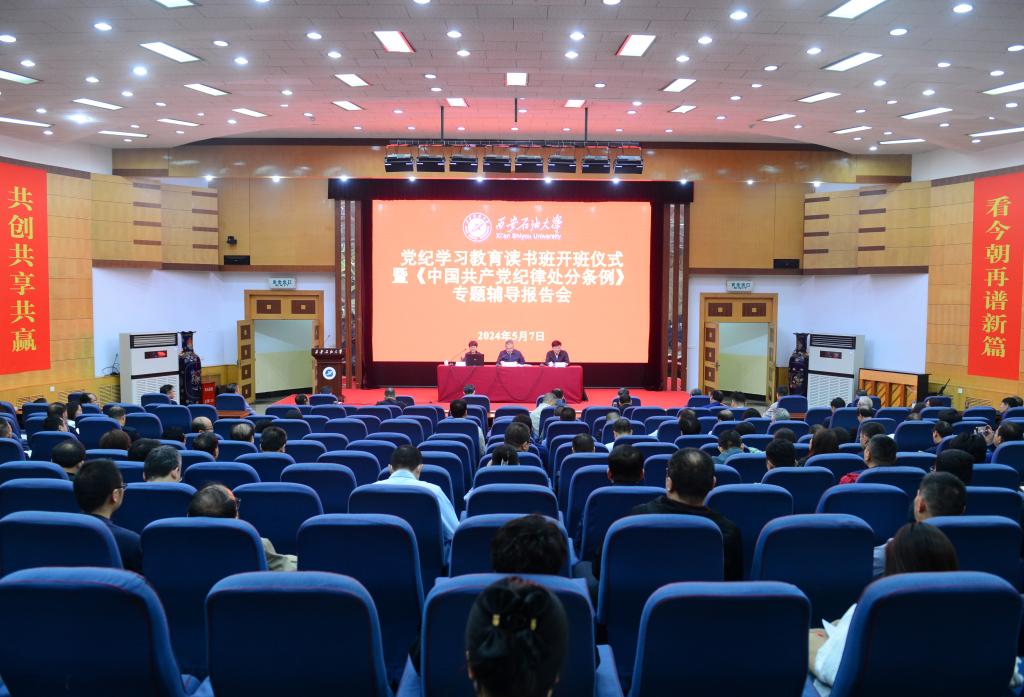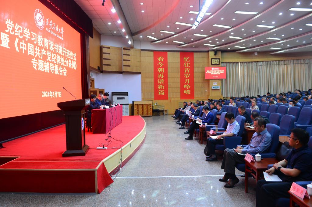 常江在講話中指出,黨的十八大以來(lái),以習(xí)近平同志為核心的黨中央把黨的紀(jì)律建設(shè)擺在全面從嚴(yán)治黨突出位置,不斷嚴(yán)明政治紀(jì)律和政治規(guī)矩。黨的二十大對(duì)全面加強(qiáng)黨的紀(jì)律建設(shè)作出戰(zhàn)略部署。黨中央著眼解決大黨獨(dú)有難題、健全全面從嚴(yán)治黨體系,2023年對(duì)《中國(guó)共產(chǎn)黨紀(jì)律處分條例》作了最新修訂,將習(xí)近平總書記相關(guān)重要論述轉(zhuǎn)化為紀(jì)律要求,用黨的創(chuàng)新理論的立場(chǎng)觀點(diǎn)方法引領(lǐng)紀(jì)律建設(shè)工作,為一刻不停推進(jìn)全面從嚴(yán)治黨提供了堅(jiān)強(qiáng)紀(jì)律保障。今年3月,中共中央辦公廳印發(fā)《關(guān)于在全黨開(kāi)展黨紀(jì)學(xué)習(xí)教育的通知》。4月份,中央黨的建設(shè)工作領(lǐng)導(dǎo)小組召開(kāi)會(huì)議,學(xué)習(xí)貫徹習(xí)近平總書記關(guān)于黨紀(jì)學(xué)習(xí)教育的重要講話和重要指示精神,研究部署黨紀(jì)學(xué)習(xí)教育工作。同月,陜西省委召開(kāi)常委會(huì)會(huì)議暨黨的建設(shè)工作領(lǐng)導(dǎo)小組會(huì)議,研究陜西省貫徹落實(shí)措施。學(xué)校黨委高度重視開(kāi)展黨紀(jì)學(xué)習(xí)教育工作,第一時(shí)間傳達(dá)學(xué)習(xí)、研究部署、作出安排。4月15日,學(xué)校召開(kāi)黨委擴(kuò)大會(huì)暨黨紀(jì)學(xué)習(xí)教育動(dòng)員部署會(huì),傳達(dá)學(xué)習(xí)中央和陜西省委研究部署黨紀(jì)學(xué)習(xí)教育工作會(huì)議有關(guān)精神,研究審定《中共西安石油大學(xué)委員會(huì)關(guān)于在全校開(kāi)展黨紀(jì)學(xué)習(xí)教育的實(shí)施方案》,就學(xué)校開(kāi)展黨紀(jì)學(xué)習(xí)教育作出部署安排。會(huì)后全校各基層黨委通過(guò)召開(kāi)黨委會(huì)會(huì)議等形式,全覆蓋完成啟動(dòng)部署,推動(dòng)黨紀(jì)學(xué)習(xí)教育走深走實(shí)。