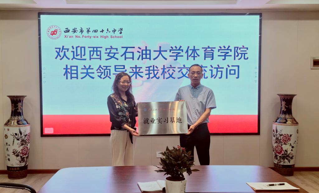 座談會后,張君濤為第四十六中學(xué)頒授了“西安石油大學(xué)就業(yè)實習(xí)基地”牌匾,并贈送了紀念品。茍毅飛代表體育學(xué)院與第四十六中學(xué)簽訂了共建就業(yè)實習(xí)基地協(xié)議。