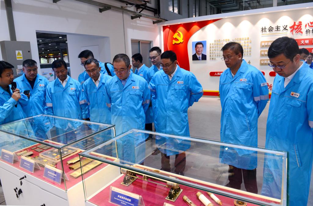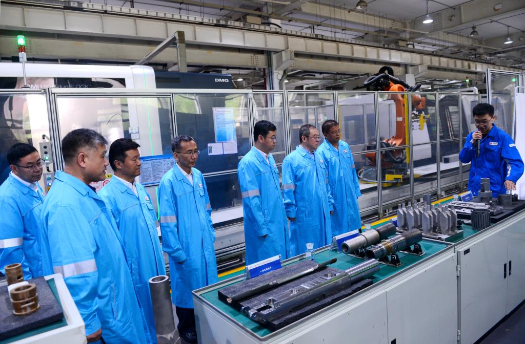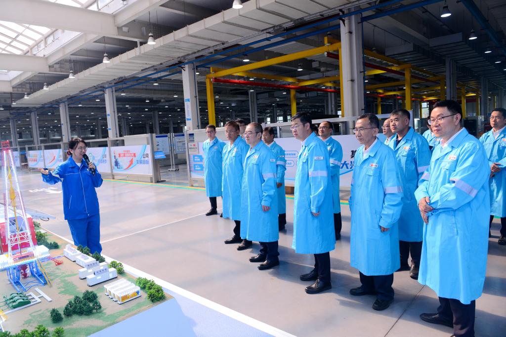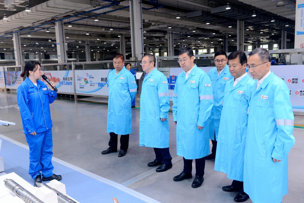 常江、王進(jìn)富一行在中國石油集團(tuán)測井有限公司執(zhí)行董事、黨委書記金明權(quán)陪同下,參觀了公司成套裝備產(chǎn)業(yè)化工房、智能制造車間,聽取公司關(guān)鍵技術(shù)產(chǎn)品發(fā)展歷程、應(yīng)用情況等方面的介紹,現(xiàn)場觀摩了智能制造車間實(shí)際運(yùn)轉(zhuǎn)情況。在園區(qū),金明權(quán)向常江、王進(jìn)富等介紹了超深穿透射孔器穿孔性能,常江、王進(jìn)富就關(guān)心的問題與金明權(quán)不時駐足交流。