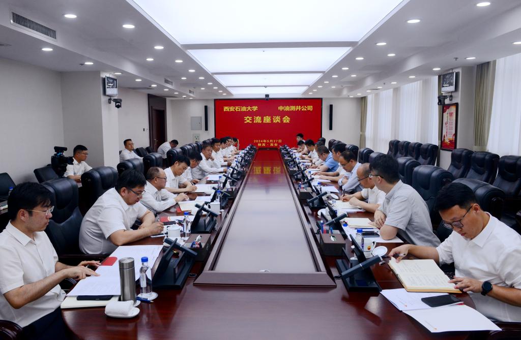 隨后,雙方在公司科研綜合樓會議室舉行交流座談會。常江指出,西安石油大學(xué)和中油測井公司同根同源,雙方長期以來堅(jiān)持服務(wù)國家能源戰(zhàn)略,在各自行業(yè)矢志奮斗,公司發(fā)展成效顯著,感到由衷欽佩。常江向中油測井公司對學(xué)校的關(guān)懷、關(guān)注和支持表示衷心的感謝,簡要介紹了學(xué)校第三次黨代會有關(guān)情況以及今后一個時期學(xué)校主要工作任務(wù)。他談到,雙方合作在能源行業(yè)校企合作中具有示范意義,既要關(guān)注常規(guī),深化校企科學(xué)研究,加大科技成果轉(zhuǎn)化力度;也要關(guān)注超常規(guī),以學(xué)校碳中和未來技術(shù)研究院等實(shí)體研究院建設(shè)為契機(jī),加大人才聯(lián)合培養(yǎng)深度和廣度,推進(jìn)高層次人才校聘企用工作。雙方合作在科教融合、產(chǎn)教融匯方面具有廣闊空間,既要全面深入,整合現(xiàn)有科研力量加強(qiáng)有組織科研;也要高度融合,實(shí)現(xiàn)平臺互相開放、資源共建共享、黨建聯(lián)建共建。常江表示,希望雙方將合作再深入、再提級,協(xié)同提升油氣測井行業(yè)人才培養(yǎng)質(zhì)量,共同提高油氣服務(wù)、鉆探保障中難題攻關(guān)能力,助力企業(yè)早日建成世界一流測井公司,期待雙方在保障國家能源安全中持續(xù)作出更大貢獻(xiàn)。