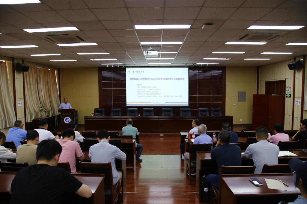 劉科院士在學(xué)校雁塔校區(qū)第五會議室作《綠色電網(wǎng)與綠色管網(wǎng)構(gòu)筑未來碳中和能源體系》的學(xué)術(shù)報(bào)告。副校長張君濤主持報(bào)告會。我校120余名師生代表參加報(bào)告會。