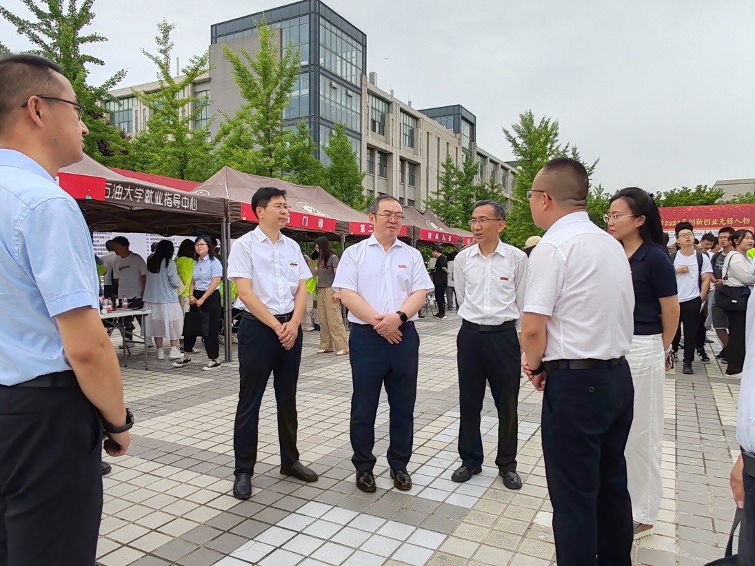 常江、王進(jìn)富、張木一行深入雙選會現(xiàn)場。詢問了企業(yè)的招聘需求,對用人單位長期以來給予學(xué)校就業(yè)工作的支持表示感謝,并希望雙方能夠進(jìn)一步加強(qiáng)校企合作,共同推動人才培養(yǎng)和就業(yè)工作。與求職學(xué)生親切交談,翻閱畢業(yè)生簡歷,詳細(xì)了解求職意向和求職進(jìn)展,鼓勵指導(dǎo)他們要樹立求職信心,秉承為人誠實、基礎(chǔ)扎實、作風(fēng)樸實、工作踏實、開拓創(chuàng)新的“四實一新”優(yōu)良品質(zhì),發(fā)揚鐵人精神,端正就業(yè)觀念,將小我融入大我,將個人發(fā)展同國家社會發(fā)展相結(jié)合,積極投身重點領(lǐng)域、重點行業(yè)、城鄉(xiāng)基層和中小微企業(yè)就業(yè)創(chuàng)業(yè)。