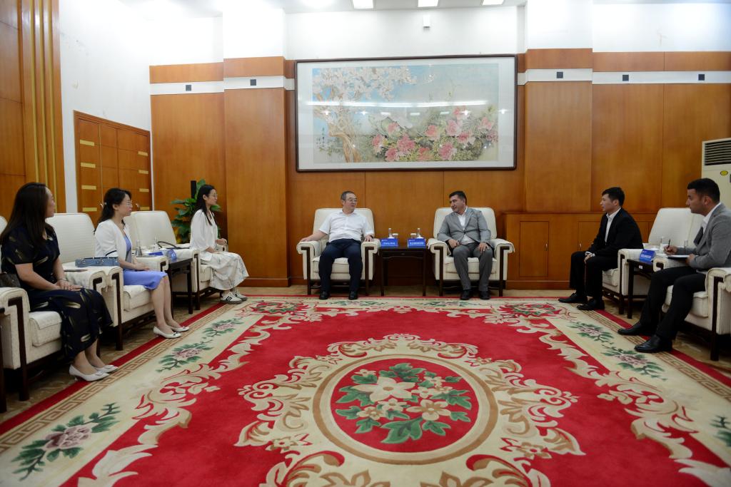 常江對(duì)魯齊耶夫·法茲利丁一行來(lái)訪表示熱烈歡迎,回顧了我校代表團(tuán)赴撒馬爾罕州訪問(wèn)概況,并指出,學(xué)??膳c伊什特汗區(qū)在優(yōu)秀青年來(lái)華留學(xué)、烏企業(yè)員工培訓(xùn)、政府官員培訓(xùn)等方面開(kāi)展合作。他強(qiáng)調(diào),中烏友好源遠(yuǎn)流長(zhǎng),希望雙方以兩國(guó)元首共識(shí)為引領(lǐng),積極推進(jìn)在教育領(lǐng)域的教育合作,搭建中烏民心相通橋梁。