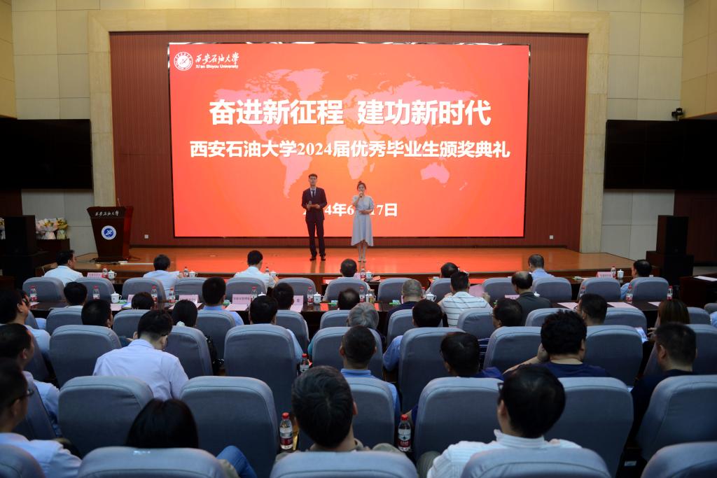 6月17日下午,西安石油大學(xué)2024屆優(yōu)秀畢業(yè)生頒獎(jiǎng)典禮在鄠邑校區(qū)弘石學(xué)術(shù)報(bào)告廳舉辦。學(xué)校黨政領(lǐng)導(dǎo)常江、王進(jìn)富、張木、楊戰(zhàn)社、張榮軍出席頒獎(jiǎng)典禮,黨委辦公室(校長(zhǎng)辦公室)、黨委組織部、黨委宣傳部、黨委學(xué)生工作部、黨委保衛(wèi)部、團(tuán)委、教務(wù)處、實(shí)驗(yàn)室管理處、研究生院(研究生工作部)、國(guó)際教育學(xué)院負(fù)責(zé)人,各院(系)書記、院長(zhǎng)(主任)、副書記,全體輔導(dǎo)員及學(xué)生代表400余人參加會(huì)議。