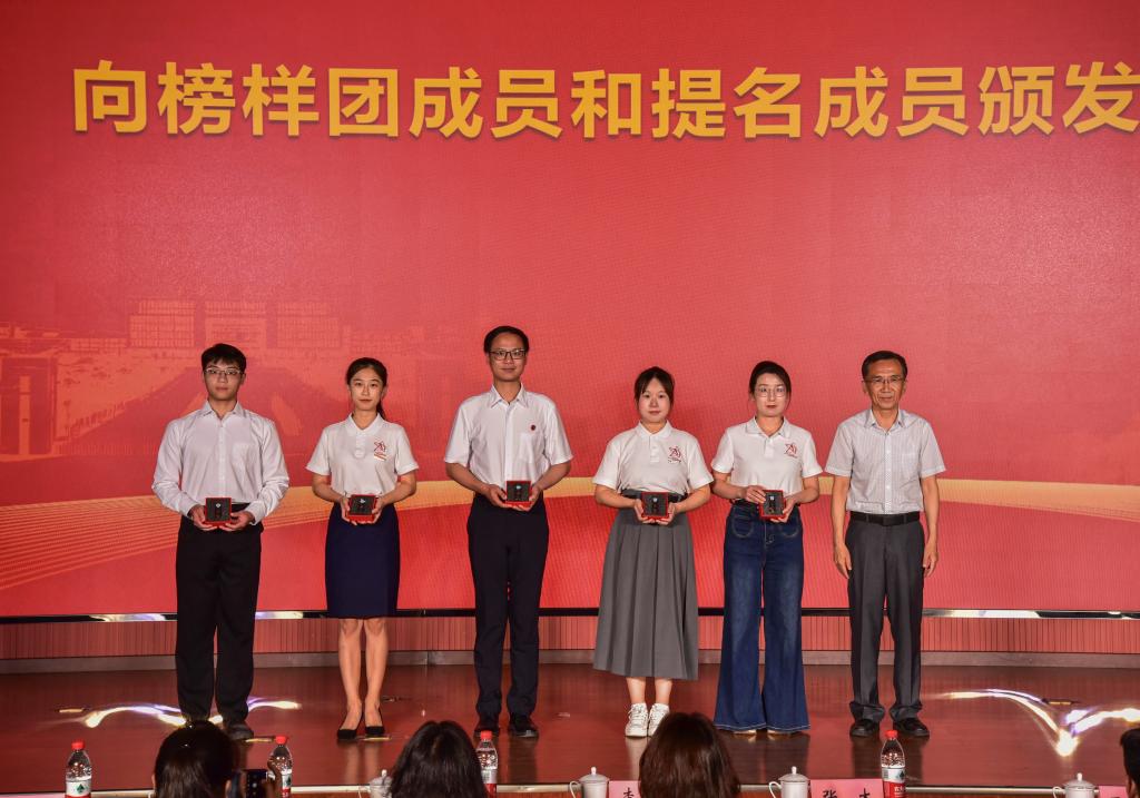 活動在西北大學舞蹈《唐印》和我校歌曲聯(lián)唱中拉開了序幕。張木向來自西安交通大學的賈曉慧,西北大學的應心怡、郭郎和我校的接葉楠、徐劍五位陜西省第二屆國家獎學金獲獎學生“青春榜樣說”宣講成員和提名成員表示熱烈的歡迎,并頒發(fā)了原油印章紀念品。