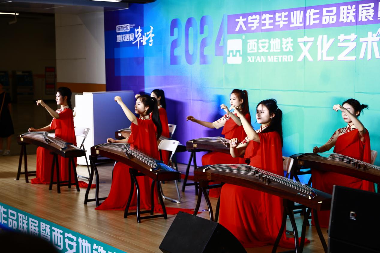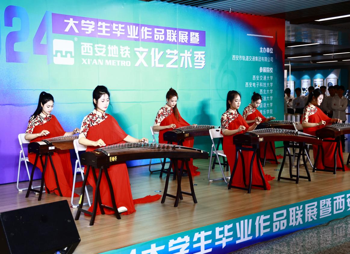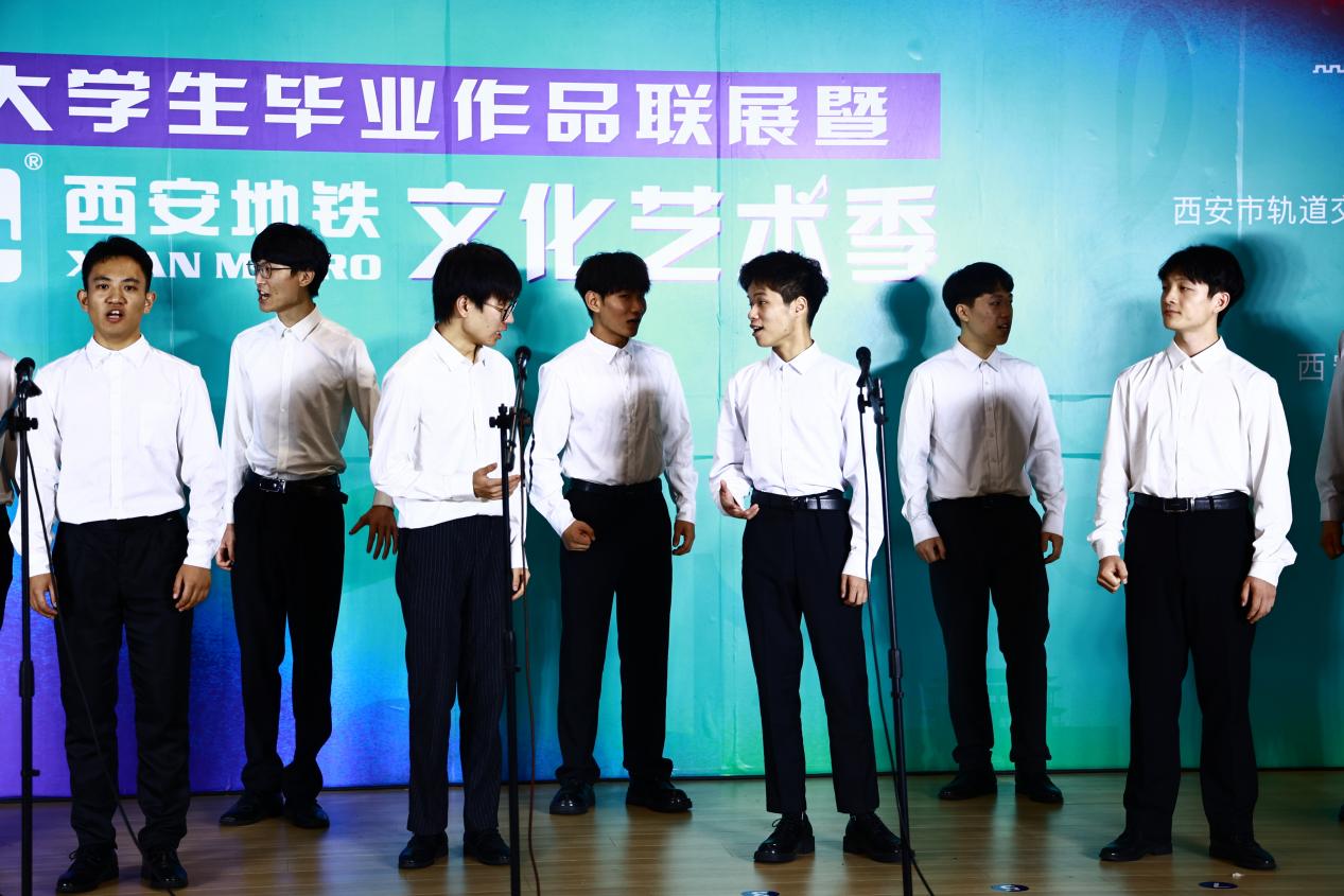 開(kāi)幕儀式上,來(lái)自西安石油大學(xué)、西安音樂(lè)學(xué)院的音樂(lè)學(xué)子及地鐵青年員工為來(lái)往市民帶來(lái)了一場(chǎng)別開(kāi)生面的藝術(shù)展演。演出類型包括民樂(lè)演奏、民歌演唱、合唱、相聲等,活動(dòng)吸引了過(guò)往市民游客駐足觀看,現(xiàn)場(chǎng)歡呼聲、掌聲不絕于耳。學(xué)子們用悅耳的古箏齊奏、激昂的民歌和熱情的舞蹈等10余個(gè)節(jié)目,表達(dá)了對(duì)青春的深刻理解和接續(xù)奮斗的遠(yuǎn)大抱負(fù),讓大家在出行中感受當(dāng)代大學(xué)生積極向上的精神風(fēng)貌和無(wú)限活力,體驗(yàn)屬于西安畢業(yè)季的浪漫。