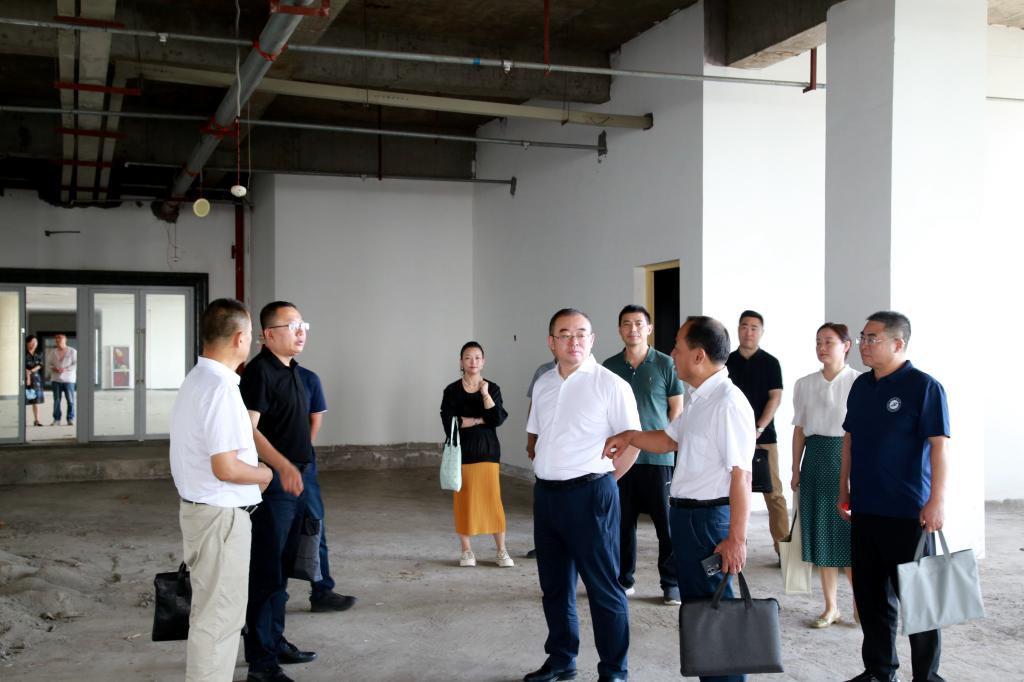 會前,與會人員赴圖書館7層實(shí)地考察“兩館”項(xiàng)目的選址工作。