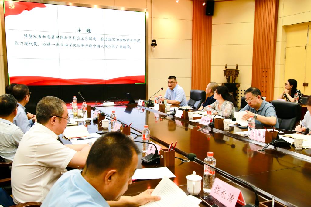 在研討交流環(huán)節(jié),馬克思主義學(xué)院院長(zhǎng)張海濤圍繞習(xí)近平總書(shū)記在黨的二十屆三中全會(huì)上的重要講話和《中共中央關(guān)于進(jìn)一步全面深化改革、推進(jìn)中國(guó)式現(xiàn)代化的決定》,對(duì)《決定》提出的重大改革舉措進(jìn)行了解讀。