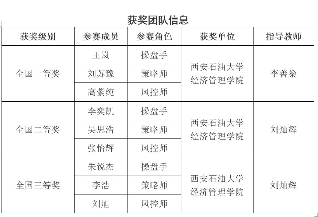 本次獲獎(jiǎng)是我校繼2021年首次參加該項(xiàng)賽事以來(lái)獲得的最好成績(jī),全國(guó)一等獎(jiǎng)獲得者來(lái)自經(jīng)濟(jì)管理學(xué)院金融專業(yè)特許金融分析師(CFA)班,體現(xiàn)了我校金融專業(yè)團(tuán)結(jié)奮進(jìn)的精神風(fēng)貌和創(chuàng)新改革的發(fā)展成效。經(jīng)濟(jì)管理學(xué)院將繼續(xù)鼓勵(lì)和指導(dǎo)學(xué)生參加各類學(xué)科競(jìng)賽,圍繞以賽促學(xué)、以賽促教、以賽促創(chuàng)的要求,將學(xué)科競(jìng)賽融入培養(yǎng)環(huán)節(jié),積極拓展第二課堂,更加重視學(xué)生自主創(chuàng)新創(chuàng)業(yè)綜合能力的培養(yǎng),更好地推動(dòng)人才培養(yǎng)質(zhì)量提升。