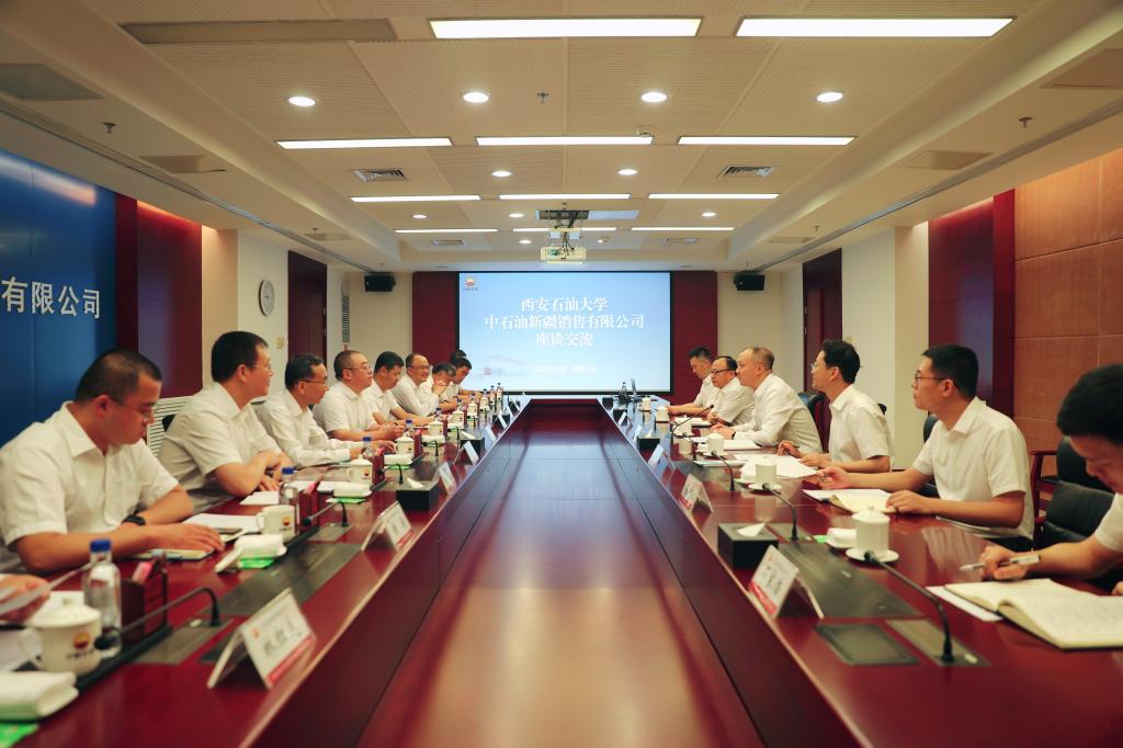 在中國(guó)石油新疆銷售有限公司走訪交流期間,公司黨委副書(shū)記、總經(jīng)理黃劍宇等企業(yè)領(lǐng)導(dǎo)會(huì)見(jiàn)常江、王進(jìn)富一行,并進(jìn)行工作座談。黃劍宇感謝學(xué)校在長(zhǎng)期的合作過(guò)程中,為公司提供了重要的人才、科技支撐。他表示,下一步將圍繞科研攻關(guān)、創(chuàng)新人才培養(yǎng)、推進(jìn)智慧銷售構(gòu)建大營(yíng)銷體系、提升學(xué)歷教育培訓(xùn)等方面,進(jìn)一步增加合作力度、拓展合作廣度、加大合作深度,共同實(shí)現(xiàn)高質(zhì)量發(fā)展。