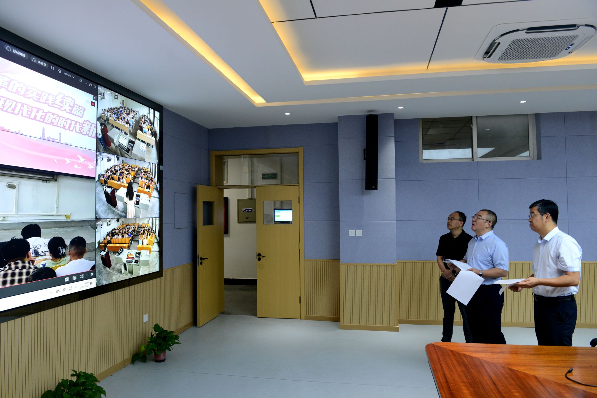 在鄠邑校區(qū)可視化管理中心,學校領(lǐng)導遠程查看新學年新學期全校第一天上課總體情況。隨后,深入到教室查課聽課,詳細了解掌握師生課堂教學活動。