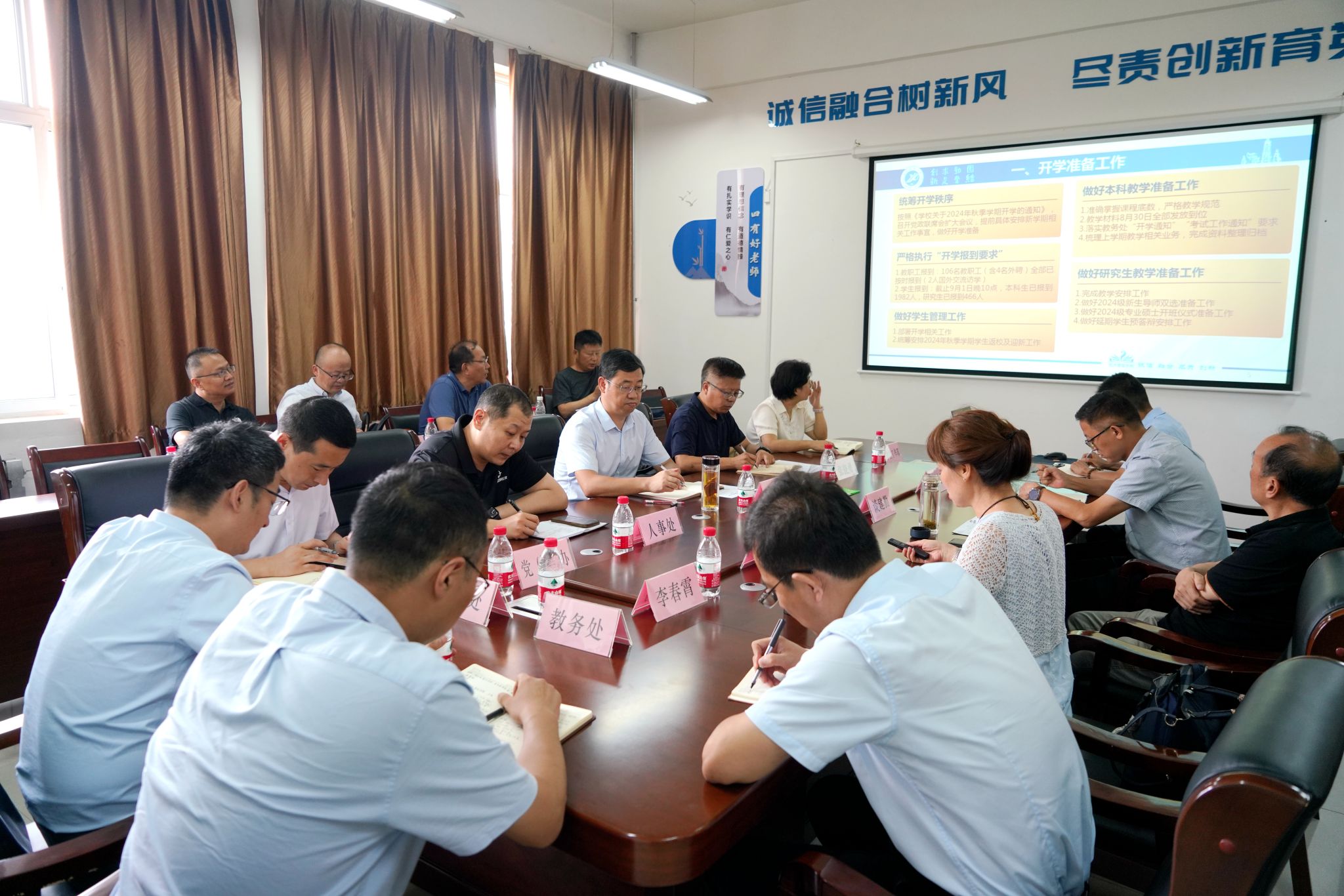 學校領(lǐng)導在深入各院(系)檢查開學準備工作,聽取有關(guān)暑期工作成效、新學期工作計劃等匯報后,對各單位利用暑期黃金時間真抓實干取得的工作成效表示充分肯定。