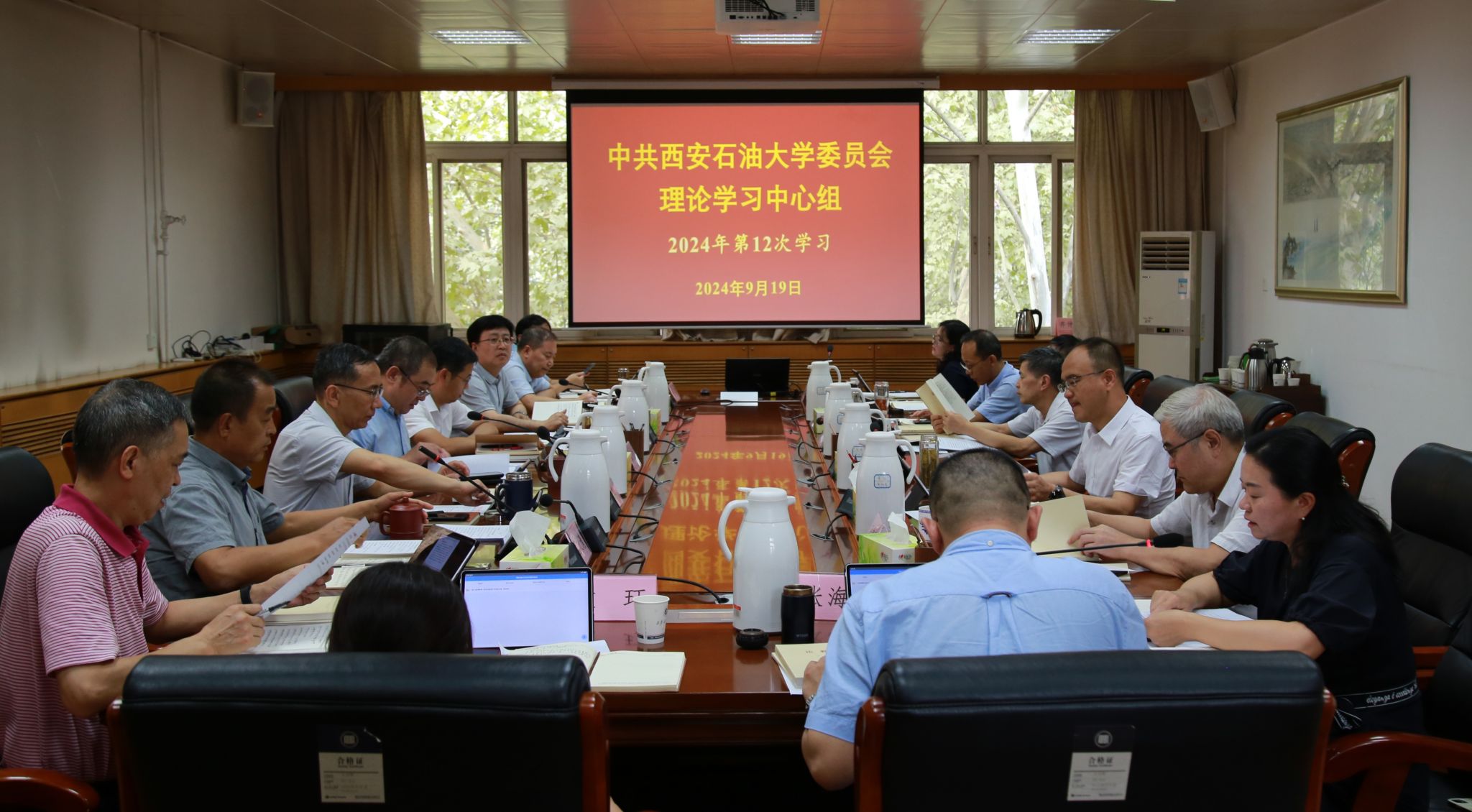 9月19日下午,校黨委理論學(xué)習(xí)中心組2024年第12次學(xué)習(xí)會(huì)在雁塔校區(qū)行政樓五樓會(huì)議室召開,會(huì)議聚焦習(xí)近平總書記在全國(guó)教育大會(huì)上的重要講話精神和習(xí)近平同志《論教育》進(jìn)行學(xué)習(xí)。校黨委書記常江主持并講話,校黨政領(lǐng)導(dǎo)王進(jìn)富、張木、王輝強(qiáng)、程永清、楊戰(zhàn)社、蘇文甫、張君濤、趙健、樊曉民,校黨委理論學(xué)習(xí)中心組成員參加會(huì)議。