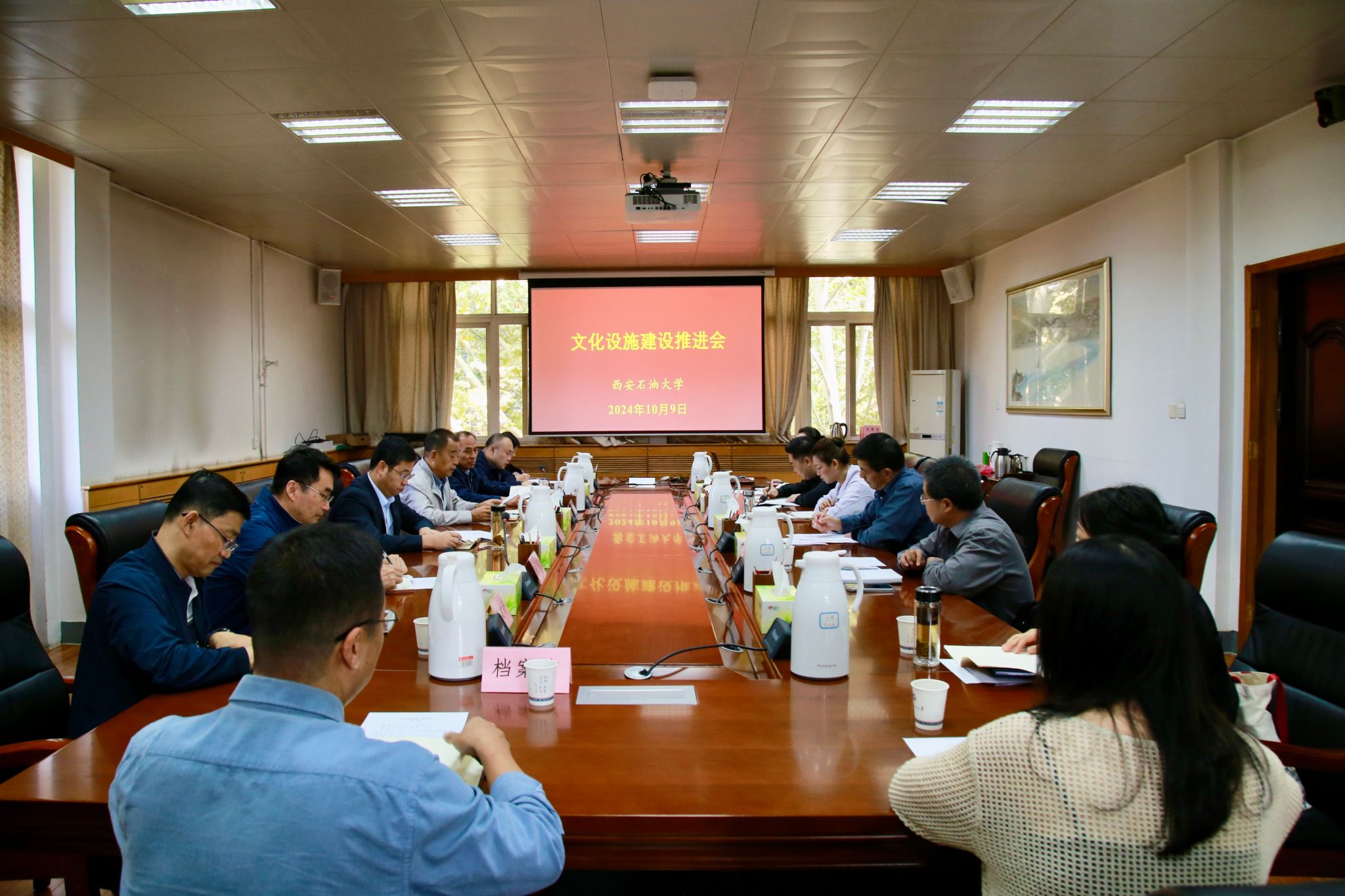 10月9日上午,學(xué)校文化設(shè)施建設(shè)推進會在雁塔校區(qū)行政樓5樓會議室召開。校長王進富出席會議,校長辦公室、黨委宣傳部、基建處、后勤處、圖書館、檔案館,人文學(xué)院、音樂系有關(guān)負責(zé)人及相關(guān)人員參加會議。會議由校黨委副書記程永清主持。